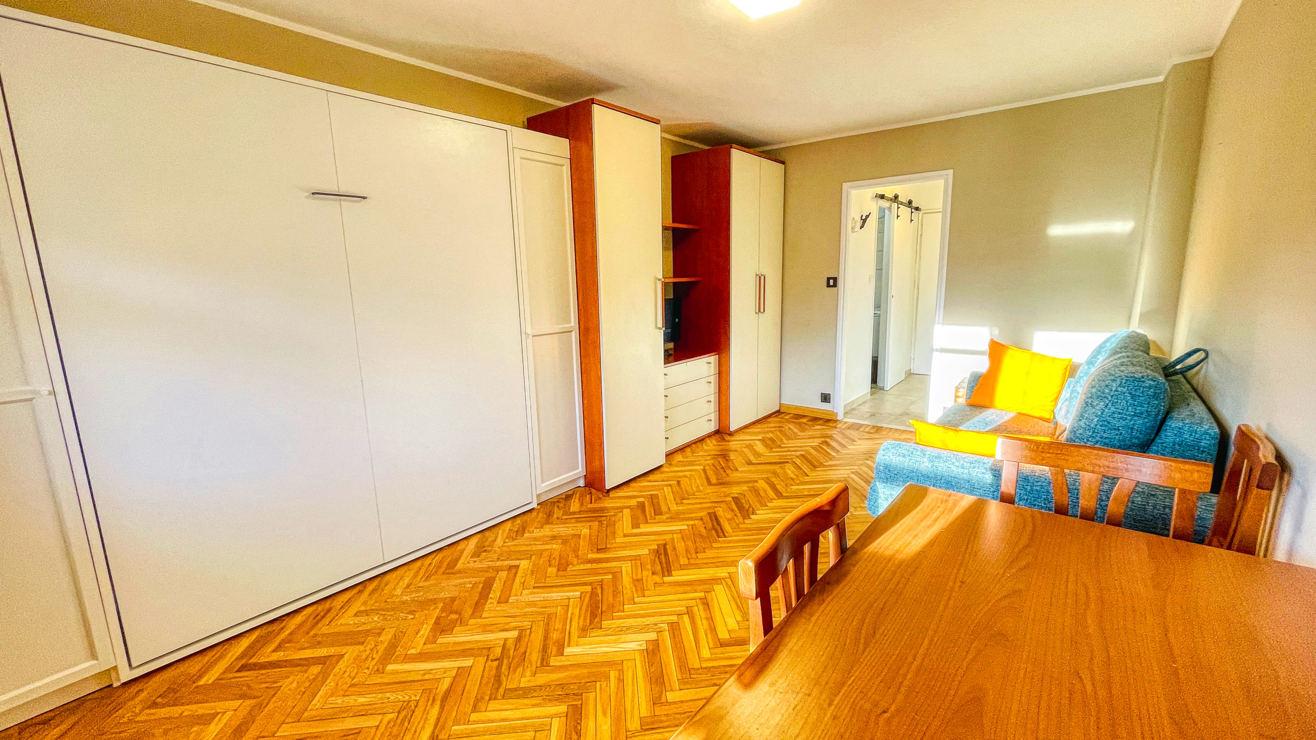 E' composto da ingresso con accesso al soggiorno con zona pranzo e due divani letto. A disposizione degli ospiti la Smart TV (con possibilita di collegamento alle piattaforme streaming mediante account personali degli ospiti). Cucinino e bagno ristrutturato.