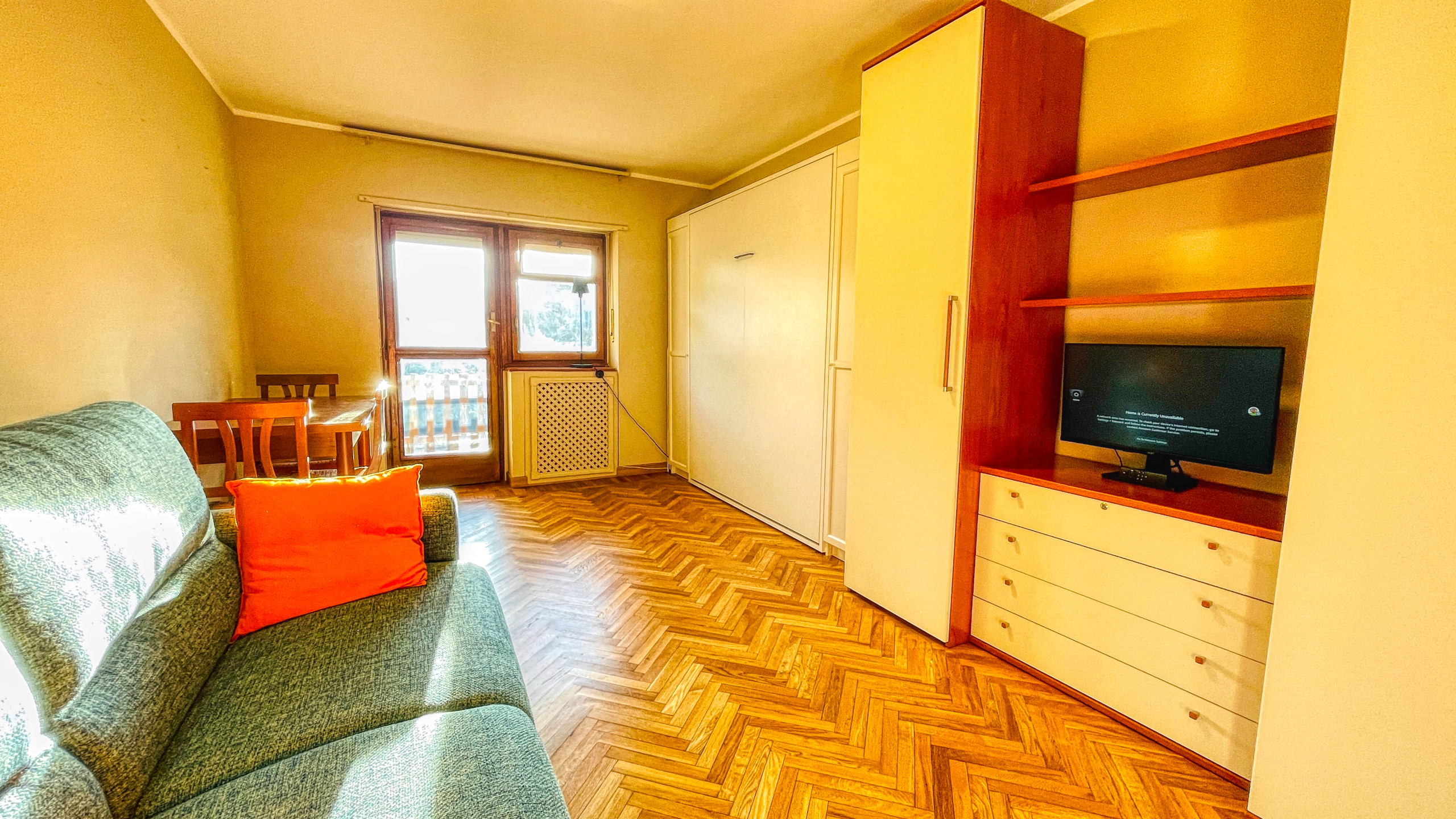Dal soggiorno si esce su l balcone con ottima esposizione e vista sulle montagne.