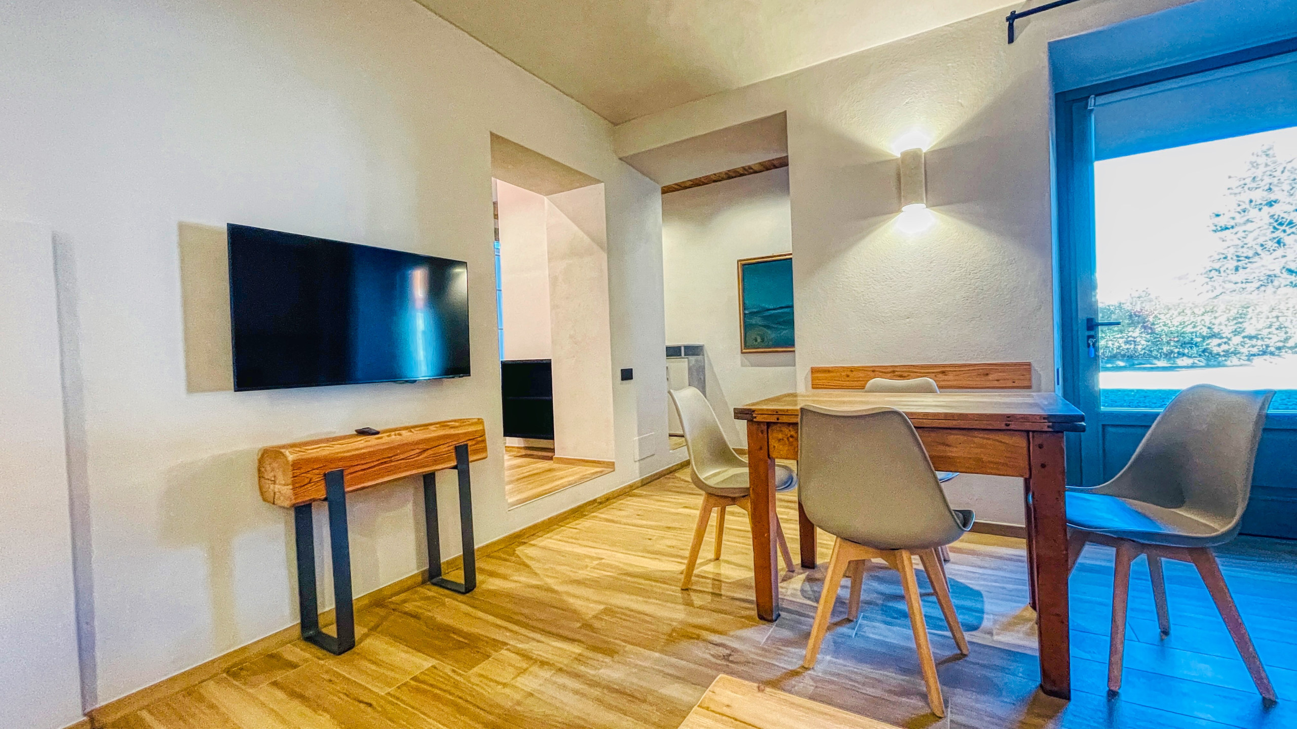 Al primo piano senza ascensore, l'abitazione è composta dal soggiorno luminoso con zona pranzo, angolo cottura fornito di microonde e lavatrice, divano letto. A disposizione degli ospiti la Smart Tv (con possibilità di collegamento alle piattaforme streaming mediante account personali degli ospiti).