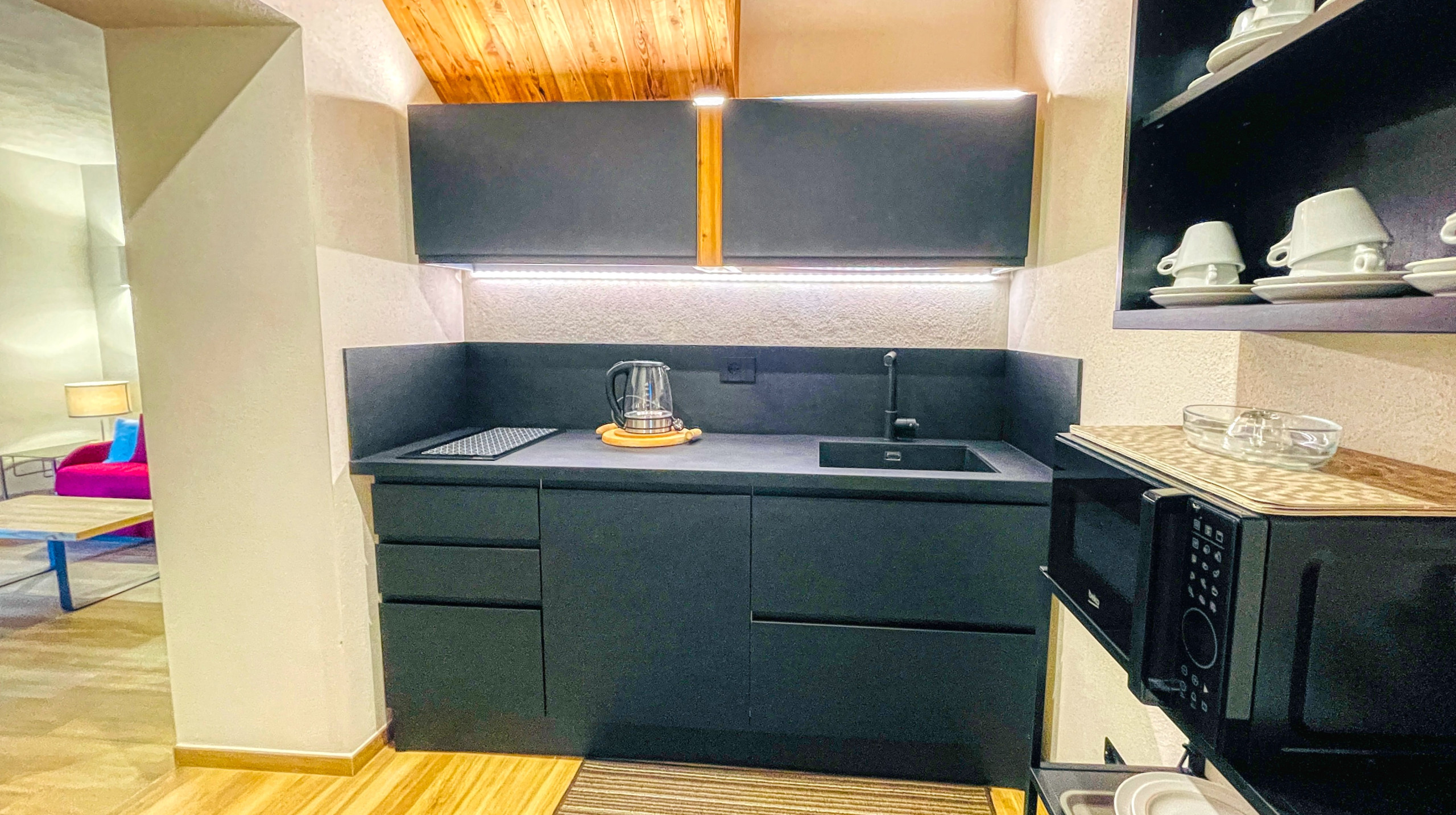 Al primo piano, l'abitazione è composta da un ampio e luminoso soggiorno, fornito di angolo cottura, zona pranzo, divano letto matrimoniale e letto a castello. A disposizione degli ospiti la Smart-Tv.