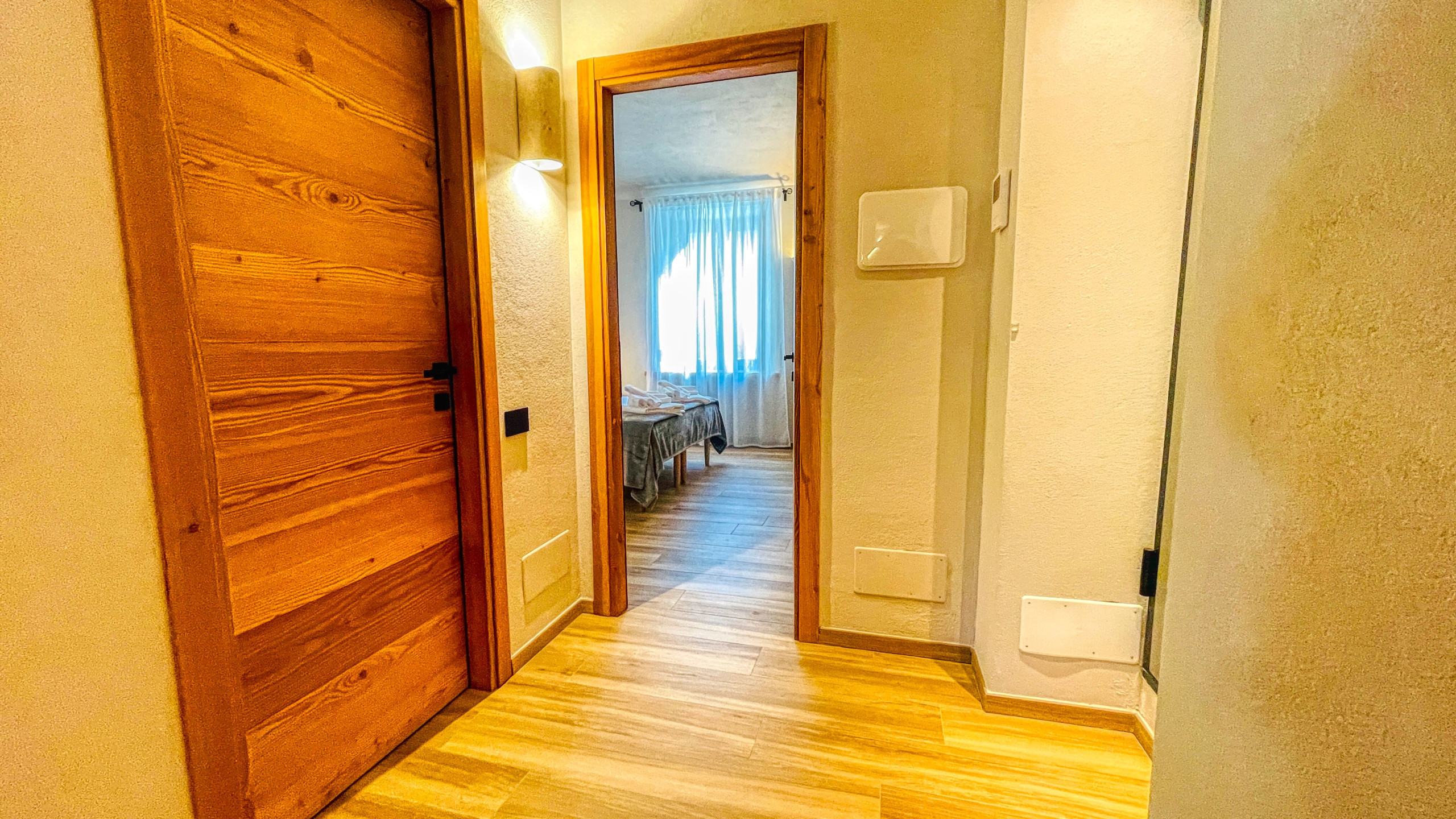 Il disimpegno porta alla camera matrimoniale con secondo balcone esposto al pomeriggio.