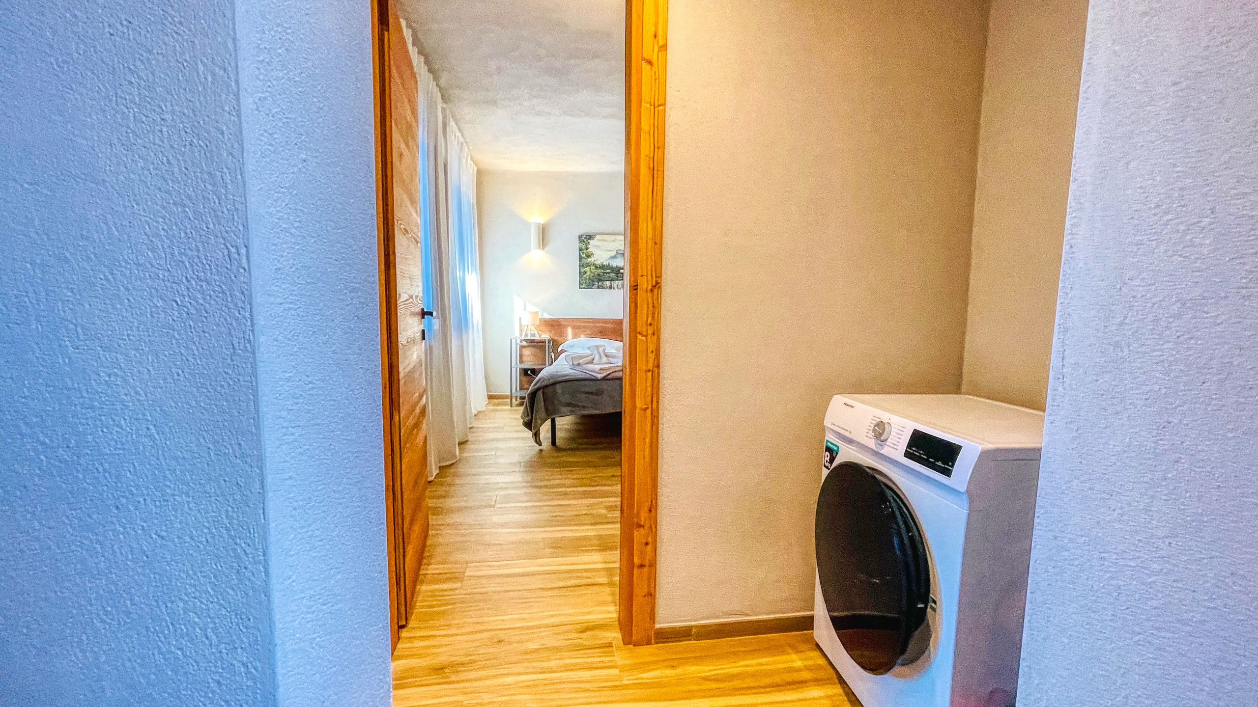 Camera matrimoniale spaziosa e luminosa, bagno con comoda doccia e nel disimpegno la lavatrice.